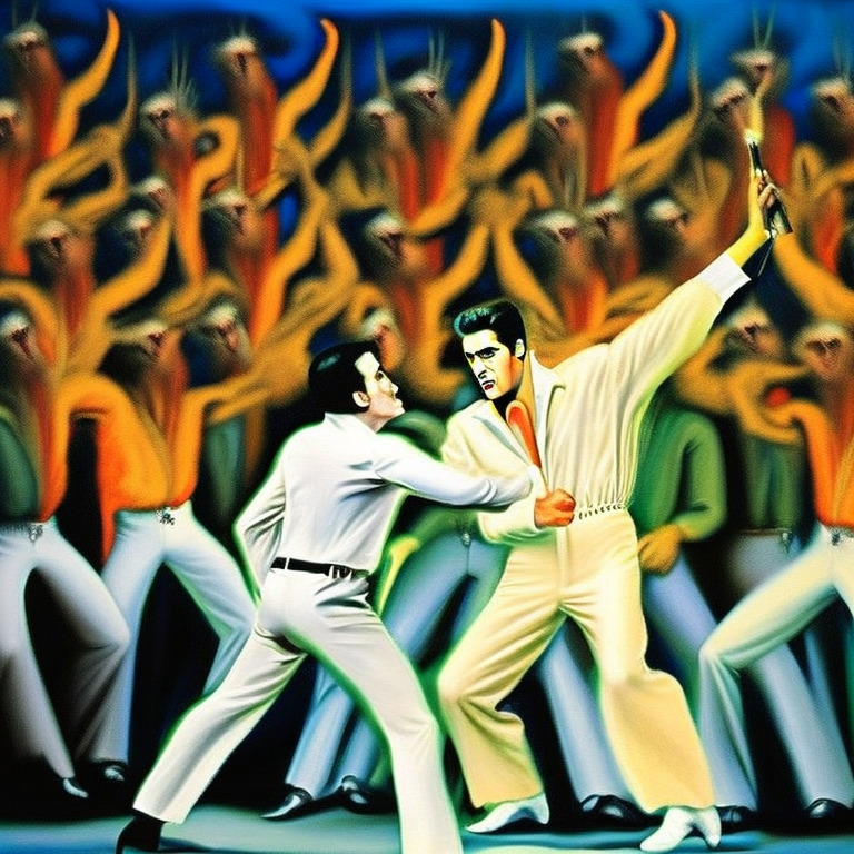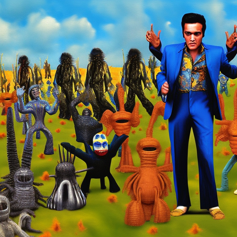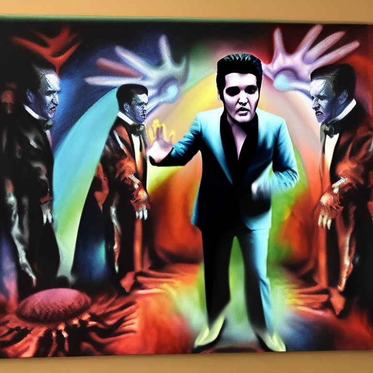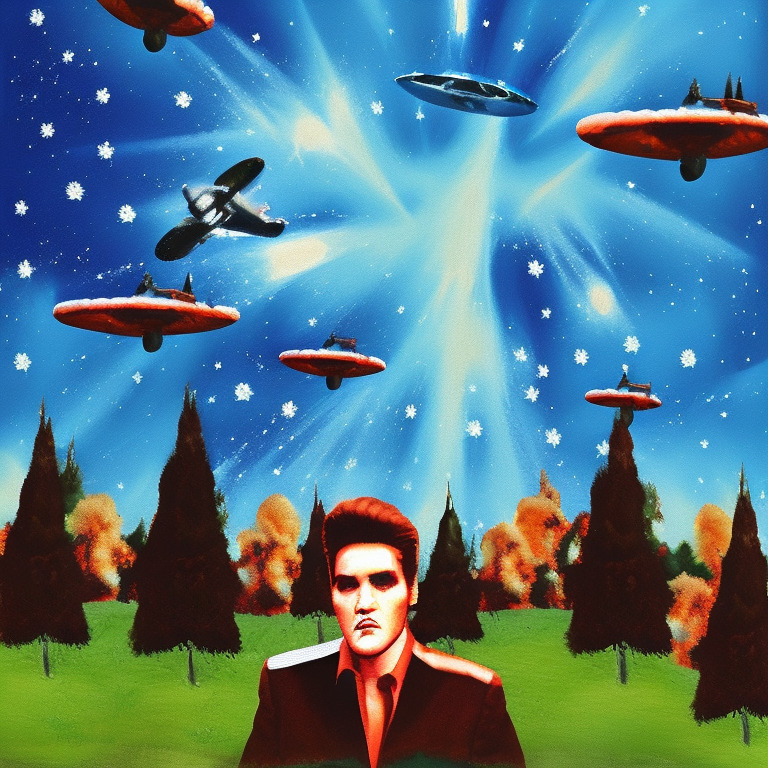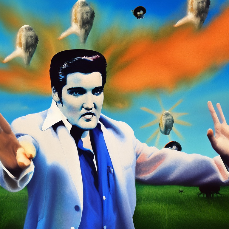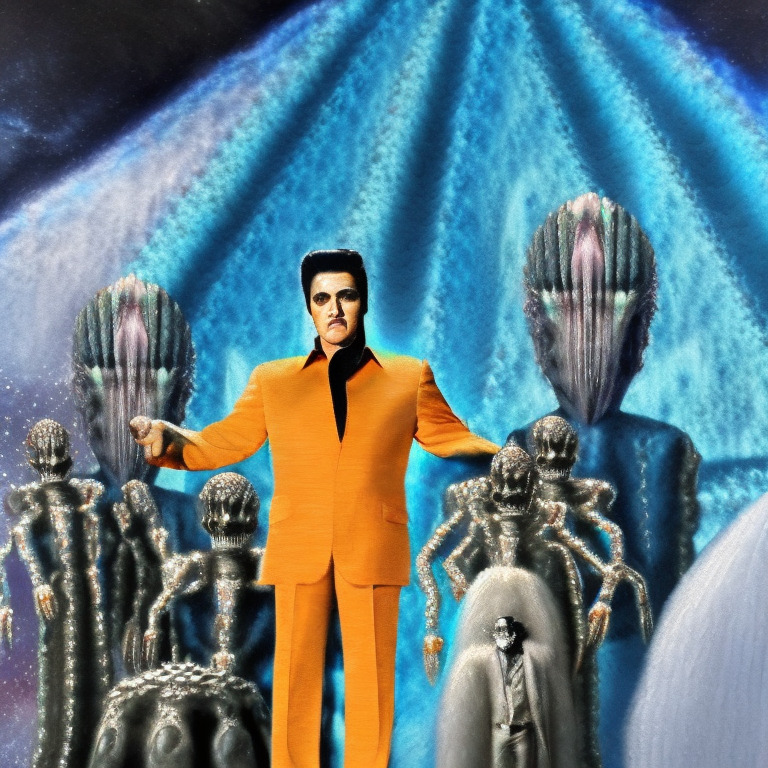 When Elvis arrived inside the alien ship, he was met by the alien leader. He was a tall and intimidating creature, with green skin and black eyes. The alien leader told Elvis that he wanted him to be the new leader of their planet. Elvis was shocked and confused, but before he could respond, the alien leader had already taken him to their planet.