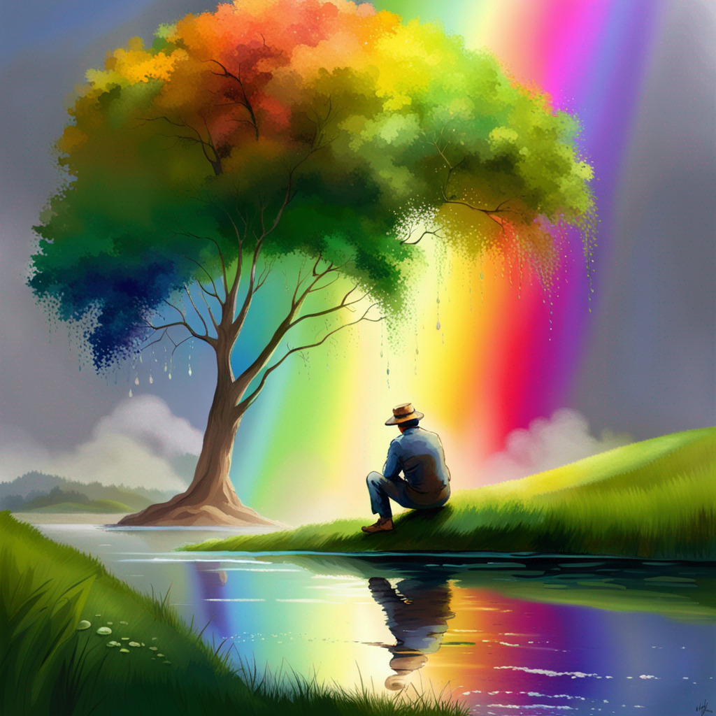 On the third day, feeling defeated, Chris sat under a tree. Suddenly, he saw a rainbow reflected in a dewdrop on a leaf. He realized the end of the rainbow was always within reach, but he had been searching too far.