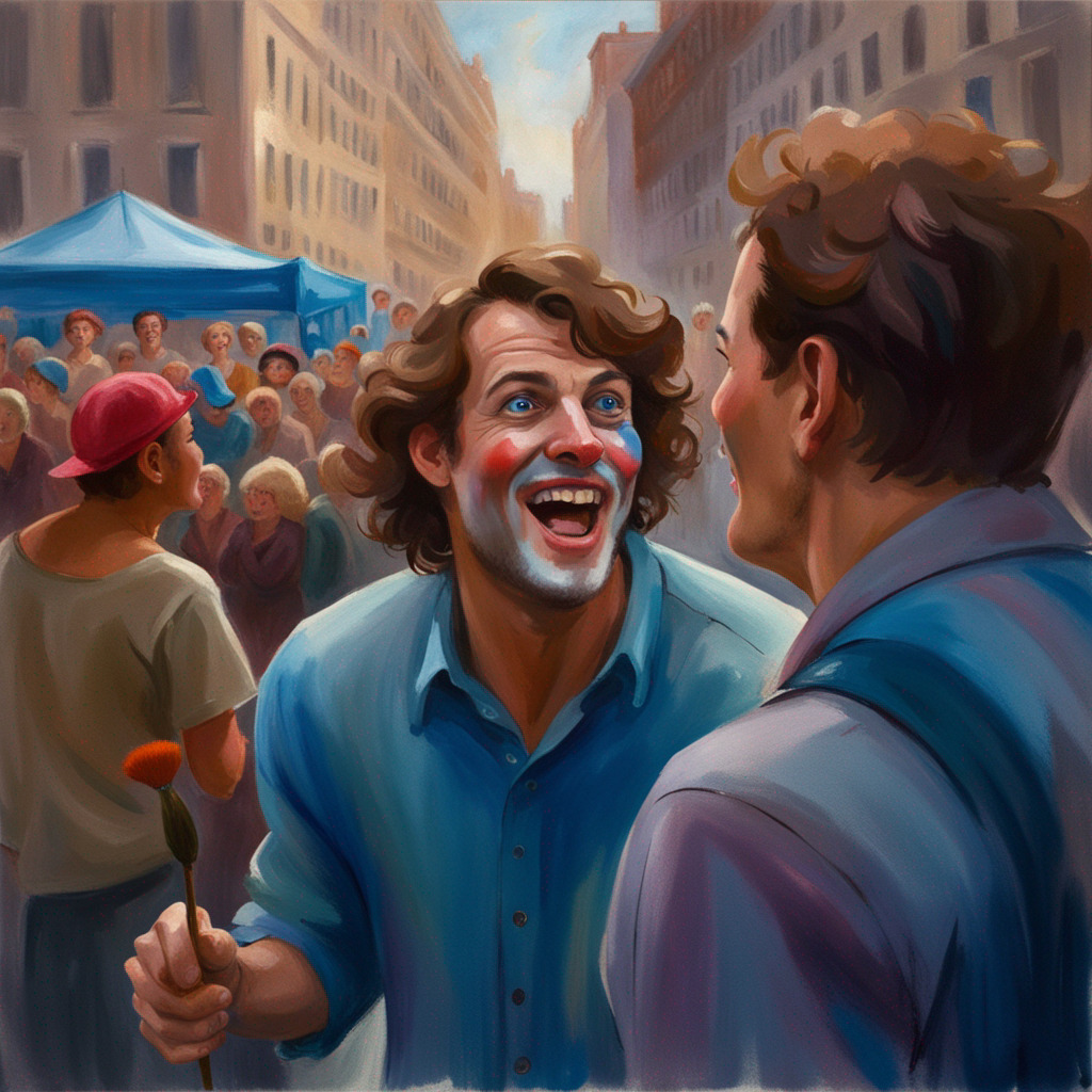 One day, while walking home from work, Chris bumped into a peculiar character, a vibrant clown with a wide smile and twinkling eyes.