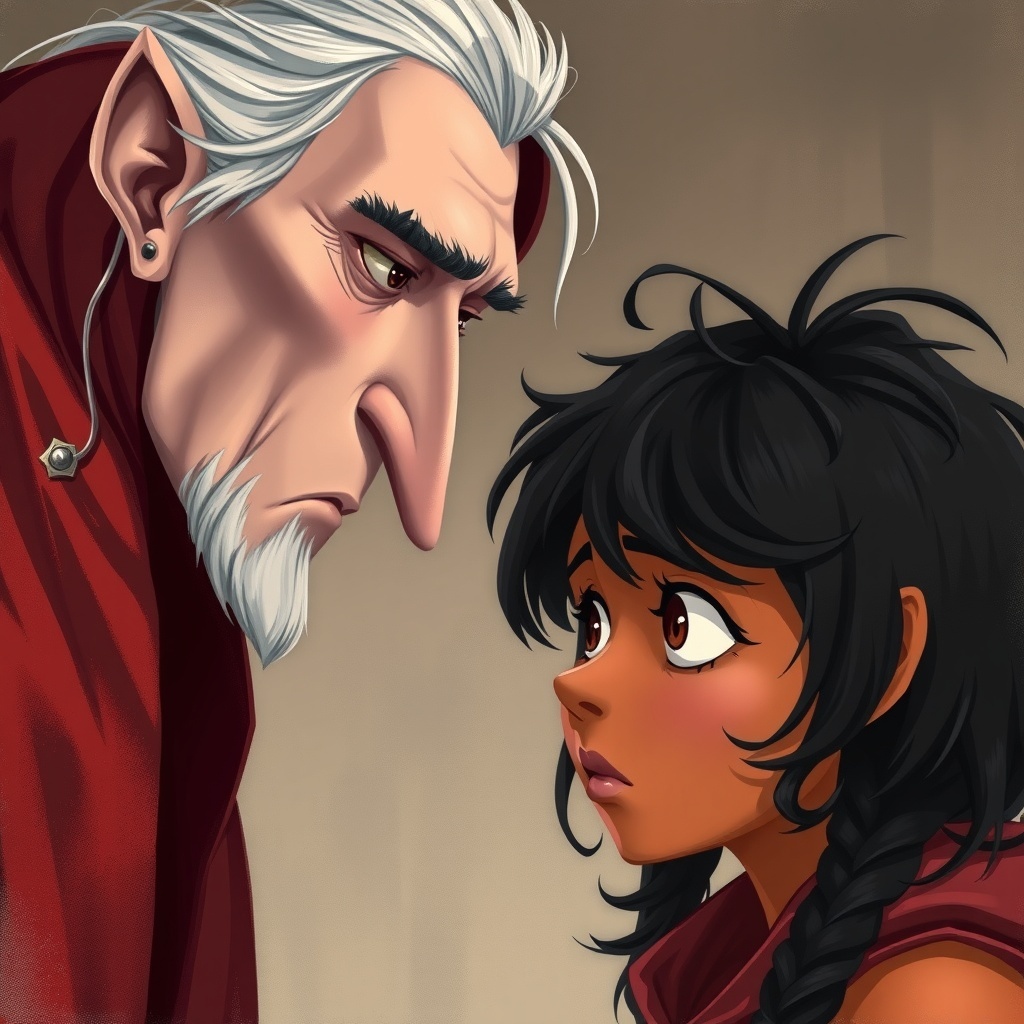 Suddenly, a shadow fell over her stall. It was Master Thorne, the city’s most formidable Inspector of Trade. He was a tall, thin man with very pale skin, a sharp nose, and slicked-back silver hair that shimmered like mercury. He wore a long, flowing velvet cloak of deep crimson and held a silver cane. Thorne wasn't there to buy; he was there to shut down stalls that weren't 'economically viable.'