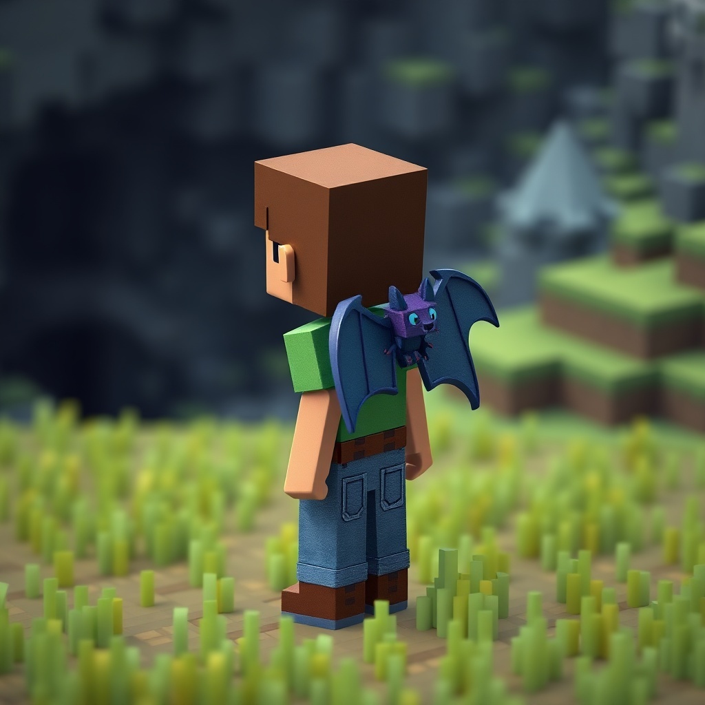 Steve was stunned. He had never seen a creature like this before. The bat, its eyes gleaming with intelligence, turned to Steve and chirped softly. It seemed to be thanking him for saving it. Steve, feeling a sense of gratitude and wonder, decided to follow the bat. It led him deeper into the cave, past winding tunnels and hidden chambers, until they reached a large, open space. In the center of the room, surrounded by glowing crystals, was a chest made of pure gold.